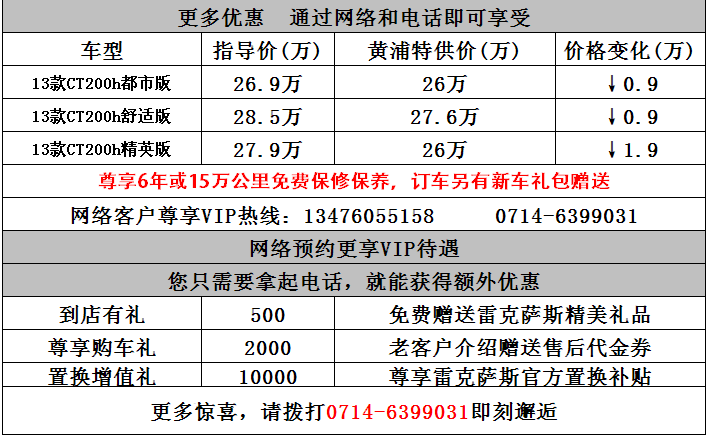 黄石雷克萨斯CT 最高钜惠1.9万送礼包