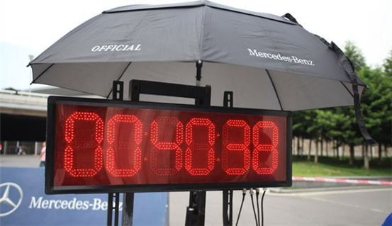 工作人员在对车辆成绩进行计时统计