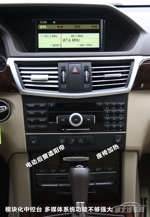 浅色的真皮座椅让车内感觉温馨。空调系统在E200L上仅提供前排左右独立调节的自动空调系统,驾驶员和前排乘客可以自主调节独立的温度,而后排乘客则是共享与前排驾驶员相同的温区域,前排驾驶员多少度后排出风就是多少度。