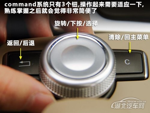 驾驶员右手极容易碰到的地方是奔驰的Command操作系统旋钮,这套系统与仪表台顶端的7寸高清晰屏幕相连,进行车辆基本设置、导航调节等功能时较为顺手。而驾驶员膝部气囊的的设计是安全方面的一大亮点。