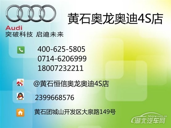 【湖北汽车网讯】黄石奥迪4S店内奥迪A4L现车销售,最高优惠57000元。电话订购再送万元豪华大礼包。凡黄冈地区客户在本店购车报销往返路费,并还有多种银行金融分期方案等你选,让你拥有奥迪不是梦,还等什么,详情尽快来店咨询。此优惠只限电话预约,黄石奥迪网销24小时尊享热线:400-868-5578;18007232211.具体优惠信息请见下表: