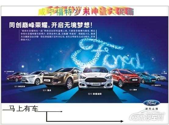 2014新的开始,咸宁福特为2014前几名购车的小伙伴们准备了更多新年惊喜礼包哦!欢迎拨打热线提前预约抢购,销售热线:400-817-4300或15271298001。