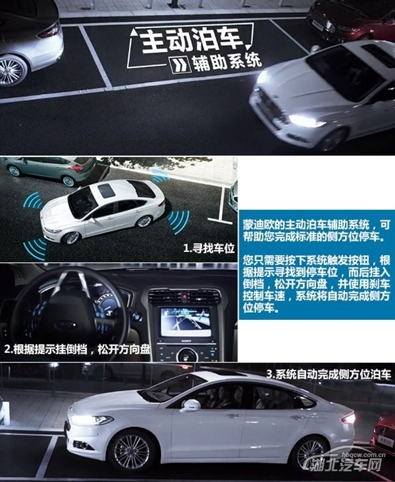 新蒙迪欧搭载的主动泊车辅助系统可以帮助车主在平行停车时操控轻松自如。车主只需在显示屏的提示下按下按键,通过控制油门、刹车和档位,系统就能自动找到一个合适的位置并自动停车入位,大大提高车主停车的便利性。