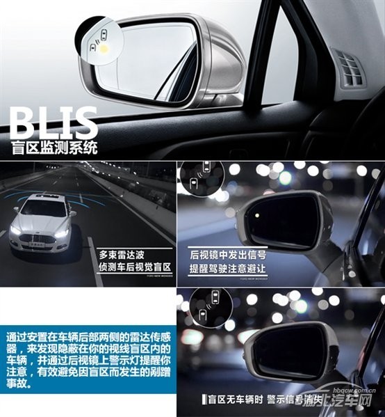 BLIS盲区监测系统,可以通过安置在车辆后部两侧的雷达传感器,来确认驾驶员视线盲区内是否有车辆,并通过后视镜上的LED闪烁来提示驾驶员注意,避免并线时发生不必要的剐蹭。