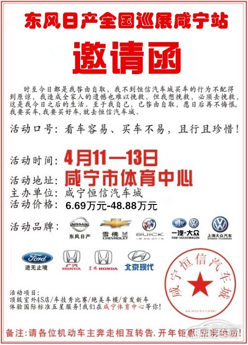 在此,咸宁南星店全体成员向您郑重提出邀请,您的到来将是我们最大的动力: