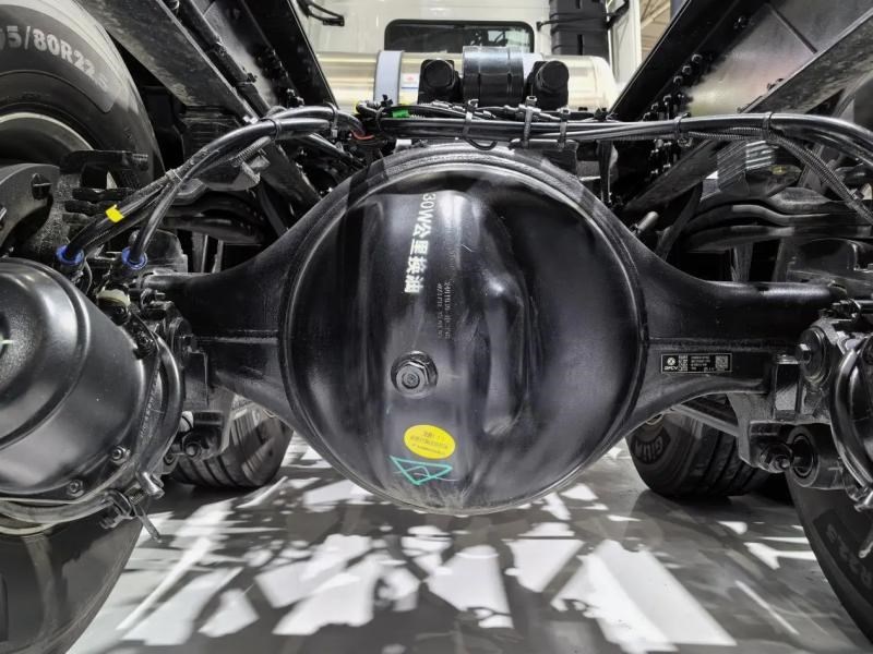 后桥配置同样针对干线物流场景优化,所搭载的DF400A后桥提供3.42和3.64两种速比可选:3.42速比适合高速干线的长距离巡航,兼顾速度与节油;3.64速比则在复杂路况下表现更优,满足不同物流企业的运营需求。这套动力组合经过实际运营验证,在长测中展现出的性能稳定可靠。