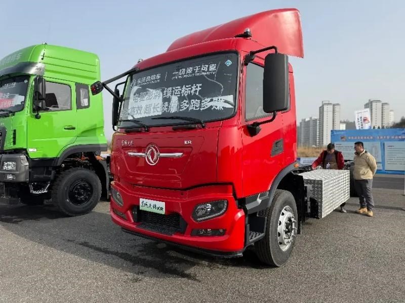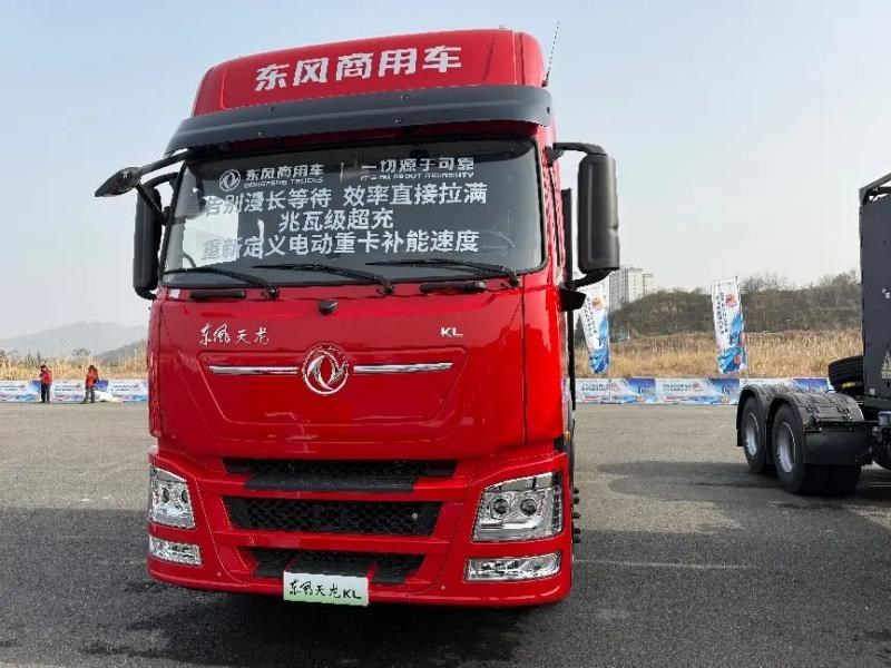 活动现场展示的13台展车中,新能源产品已占据重要位置。东风天龙KL华为兆瓦超充牵引车、东风天锦KR中型纯电载货车、东风天龙KC纯电自卸车三款针对不同场景的产品,配合现场发布的“新能源生态共创”计划,构成了东风商用车应对行业变革的组合拳。