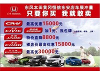 【湖北汽车网讯】买车选时候,该出手时就出手,黄冈东风本田4S店为回馈广大消费者,特推出2月1日到2月6日"一天一台特价车"活动!